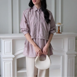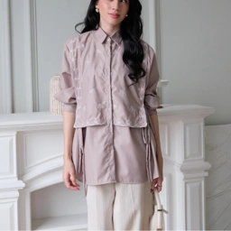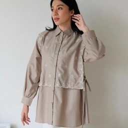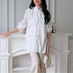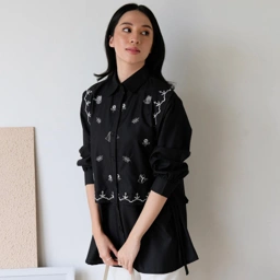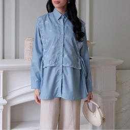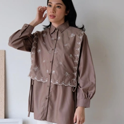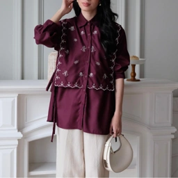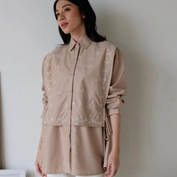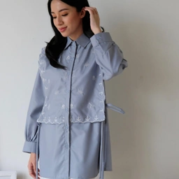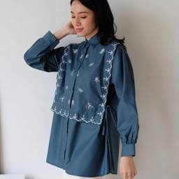 Nora Shirt | ATKEY - Kemeja Vest Tali Wanita Bahan Katun Motif Bordir