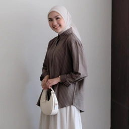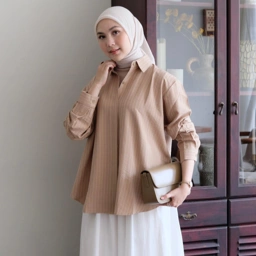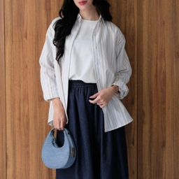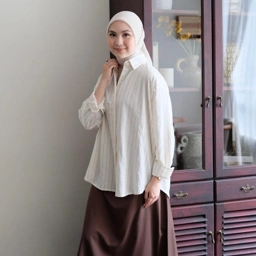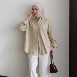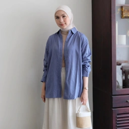 Flowing Shirt Pattern | ATKEY - Kemeja Wanita Stripes Oversized Lengan Panjang